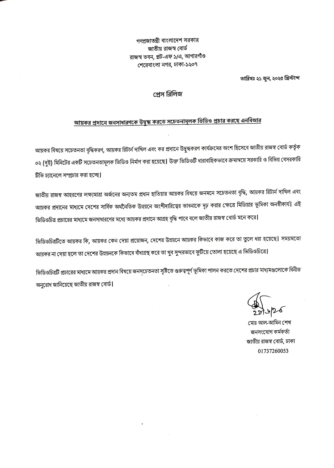 11711 জি এম আবুল কালাম কায়কোবাদ, সদস্য (কর প্রশাসন ও মানবসম্পদ ব্যবস্থাপনা)-এর পাসপোর্টের অনাপত্তিপত্র
